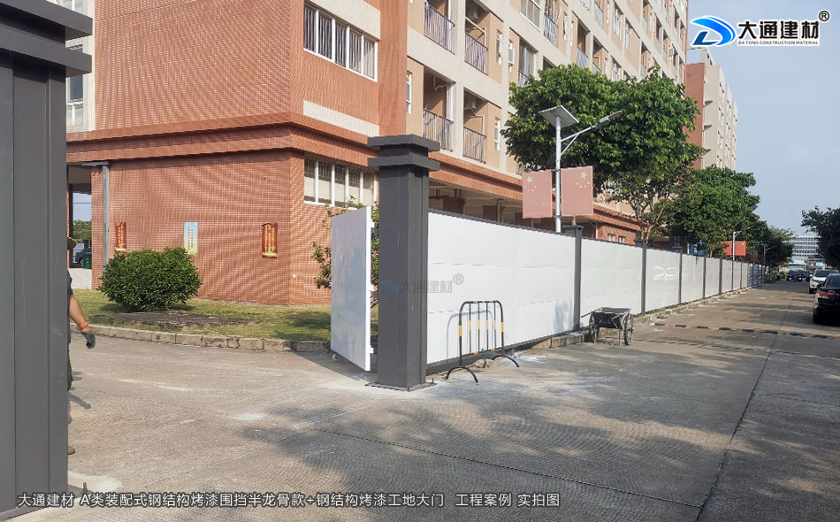 大通建材 A類鋼結(jié)構(gòu)烤漆圍擋-2米高半龍骨款 應(yīng)用到惠州項目工程圍擋案例實拍圖如下