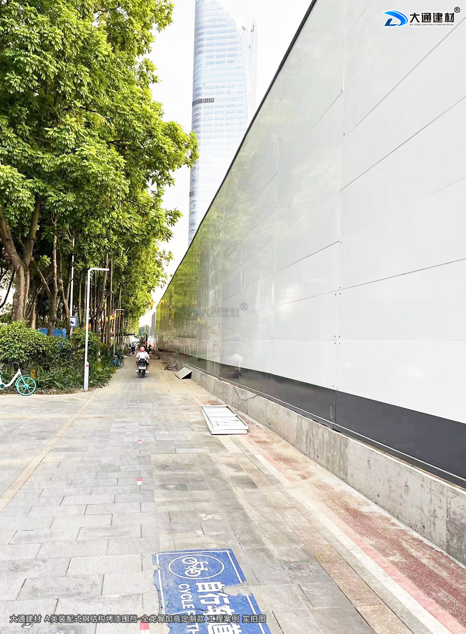 深圳市大通建材生產(chǎn)銷售的A類裝配式烤漆鋼圍擋-全龍骨定制加高款 應(yīng)用于 深圳建設(shè)地產(chǎn)工程項目中