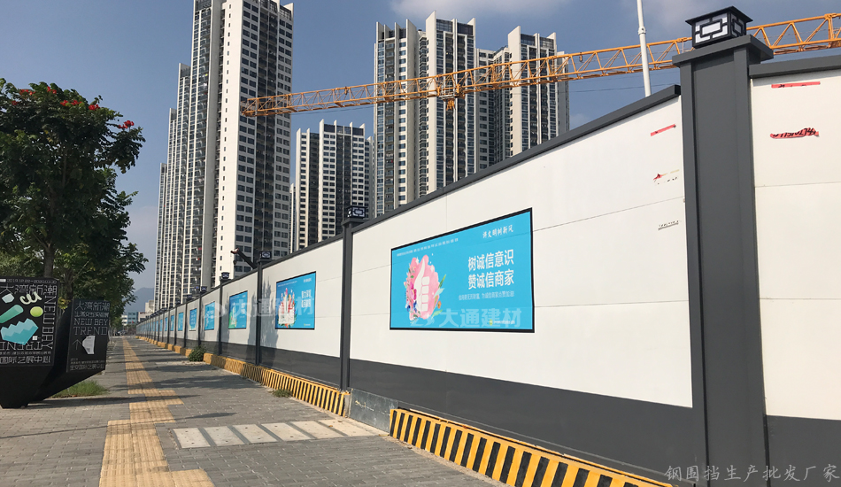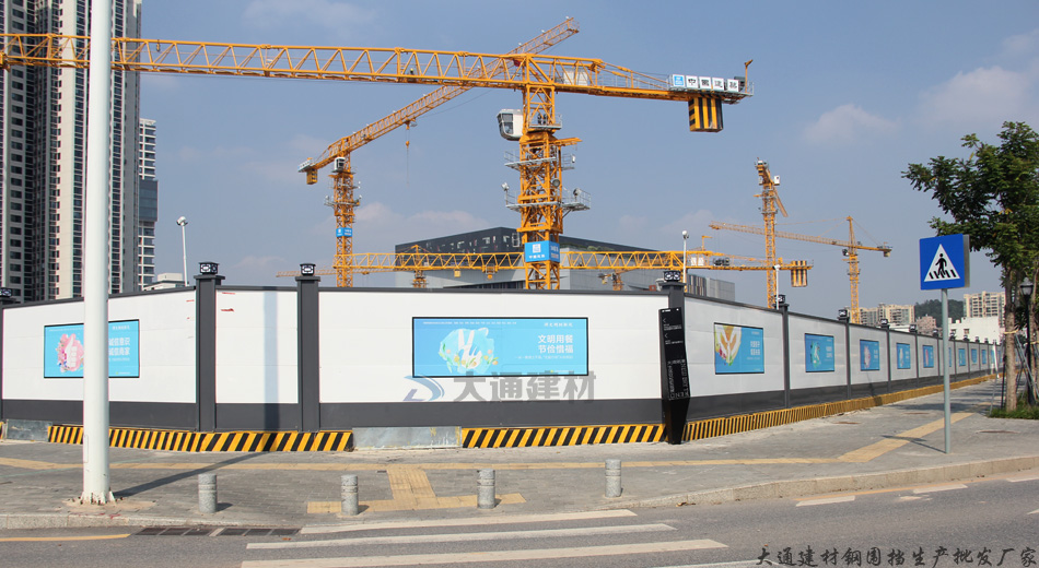 深圳市大通建材烤漆鋼結(jié)構(gòu)圍擋a款-深圳寶安藝展中心工地施工圍擋案例
