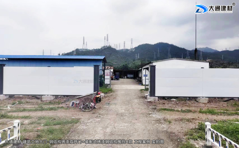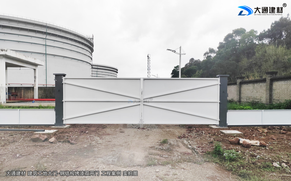 建筑工地大門-施工大門-鋼結構烤漆雙開門-工地大門-深圳市大通建材有限公司鋼圍擋生產定制廠家
