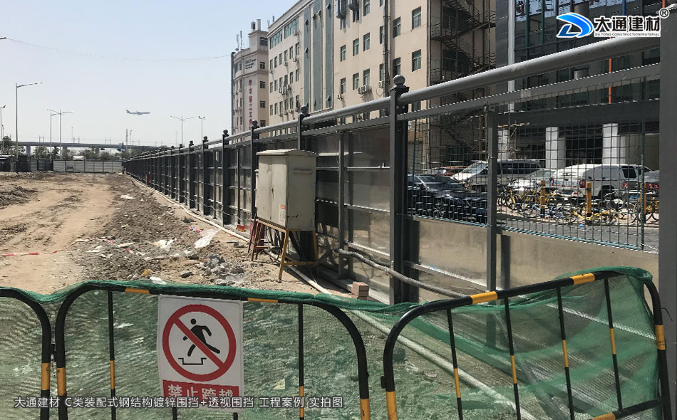 上述展示的是工地中安裝了大通建材透明圍擋+C類鍍鋅款鋼結構圍擋的案例實拍圖