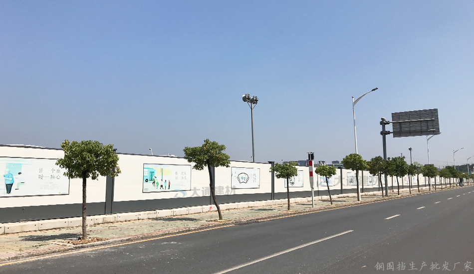 大通建材新型裝配式鋼結構圍擋上可懸掛宣傳標語橫幅;圍擋上部有彩旗和警示器插孔,從而使其既具有實用性,又具有美觀性;鋼結構圍擋構造 :鋼板快拼式圍墻主要由 鋼構立柱、鋼板、上下橫梁、立柱柱帽等組成,穩固性能好,鋼板塊拼圍墻板面是烤漆/鍍鋅鋼板材質,整體鋼質結構,構件安全性高結構牢固,可抵御8-9級臺風,降低因臺風造成的財產損失。由于產品表面光滑,因而又極易清潔。鋼結構圍擋經檢驗,各項技術指標都達到了國內相關的標準。顏色鮮艷、外形美觀、標志明顯、經久實用,是很好的城市建筑工程文明施工保障產品。