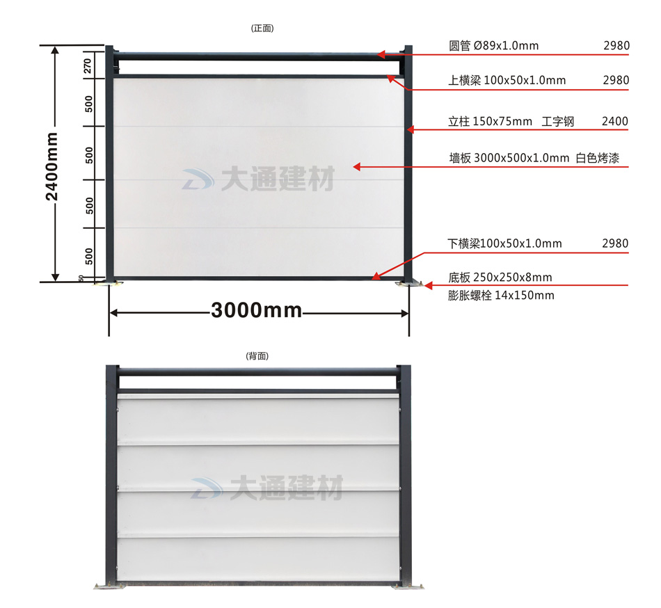 大通圍擋為您解答關于“大通建材C類裝配式鋼結構圍擋烤漆款有怎樣的規格特點呢?”相關問題?