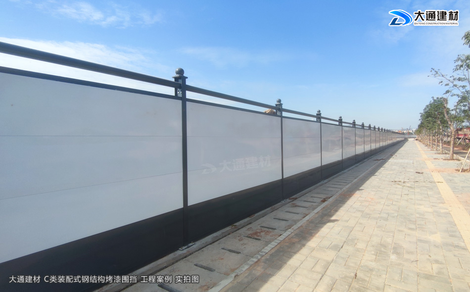 施工安全方案解決工程師,24小時在線等候您的咨詢!深圳市大通建材有限公司10多年來一直從事圍擋生產批發工作,在東莞設有大型鋼結構圍擋生產基地,那么大通建材C類裝配式鋼結構圍擋烤漆款有怎樣的規格特點呢?現在就與大通鋼結構圍擋小編一起了解一下吧。
