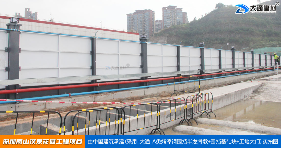 施工安全方案解決工程師,24小時在線等候您的咨詢!自從2019年爆發(fā)新冠病毒到現(xiàn)在2022年已有三年之久,很多行業(yè)受到新冠疫情的影響,處于低谷期,而深圳的老舊小區(qū)改造、道路修改、地鐵修建、房地產(chǎn)樓盤開發(fā)等各種項目工程,因深圳疫情防控得當(dāng),未受到過多的影響,一如既往的能聽到機器操作的聲音,這些項目工程的施工外圍均需要圍上圍擋,大通建材A類烤漆鋼結(jié)構(gòu)圍擋-半龍骨款是今年備受工程單位喜愛的圍擋款式之一。