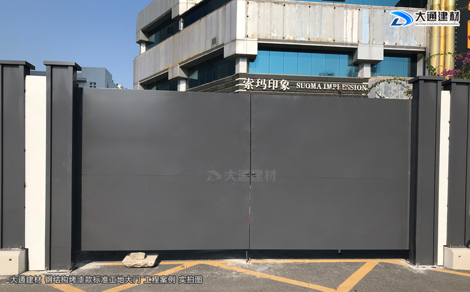 深圳大通建材是生產鋼結構烤漆款標準工地大門源頭廠家,在東莞設有大型的標準工地大門生產基地,大通標準工地大門貨源充足,常規款標準工地大門有現貨,下單可安排裝車配送安裝,特殊需求的工地大門,可定制化生產。了解更多“標準工地大門”詳情 歡迎來電咨詢洽談 13826562448 梁先生