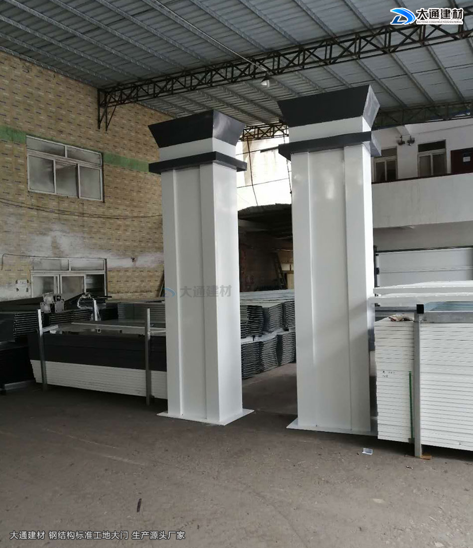 大通建材鋼結構烤漆款標準工地大門,不僅工地大門的門板與立柱的顏色可定制,工地大門的尺寸規格(長度、高度)等也可定制化生產。