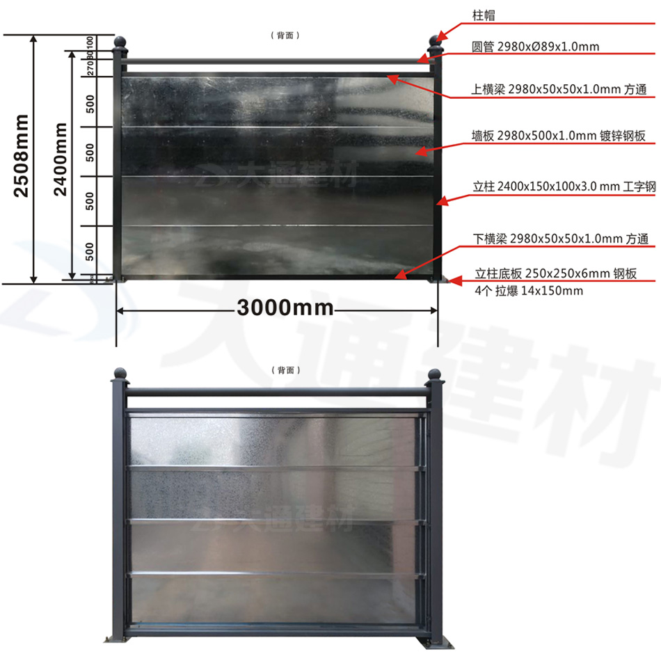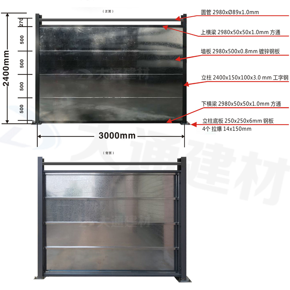 大通建材工字鋼圍擋鍍鋅2.4/2.5米高C款(每檔長為3米)規(guī)格參數(shù)表