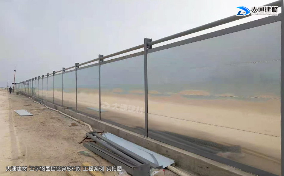 大通建材工字鋼圍擋C類鍍鋅板款亦是一款新型的裝配式鋼結構圍蔽,符合市政新標準、拆裝方便、結構牢固、抗風力達到10級、安全性高,圍擋生產源頭廠家直接銷售、價格更便宜。