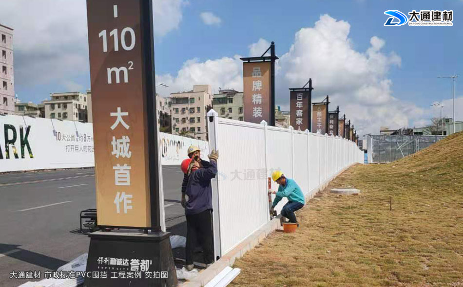 深圳市大通建材有限公司是一家集生產、銷售、安裝新型平面墻板PVC圍擋于一體的圍擋廠家,強大產能,隨時有現貨,下單即可送貨、安裝。已廣泛應用到房地產建設、市政道路修建、小區改造等工程項目中,了解更多“大通PVC圍擋”詳情 請咨詢:13826562448