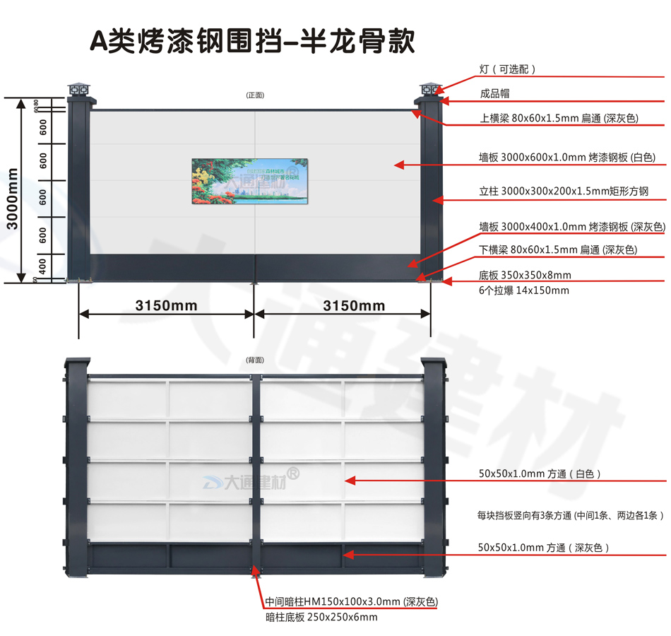 深圳市大通建材圍擋廠家直接銷售,不存在任何中間銷售商,圍擋價格更便宜。專業(yè)團(tuán)隊,提供定制化生產(chǎn)、配送安裝、包工包料等服務(wù)。