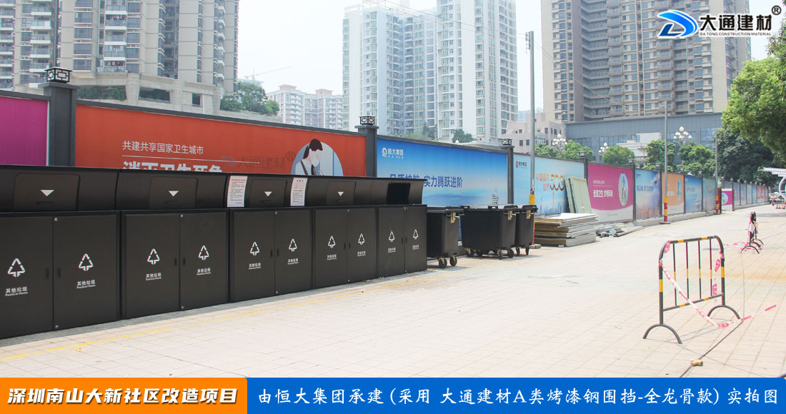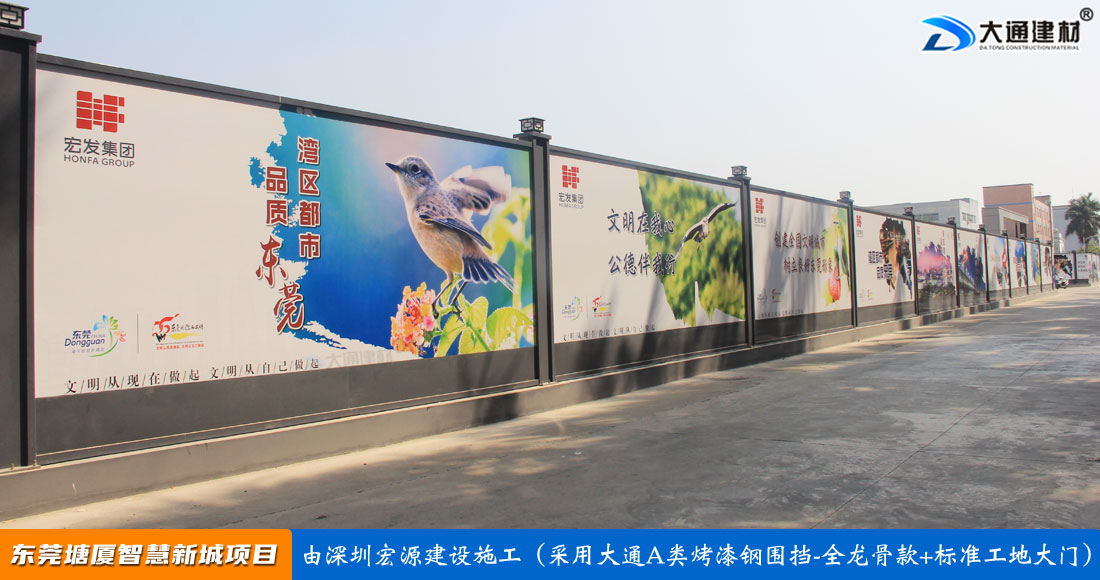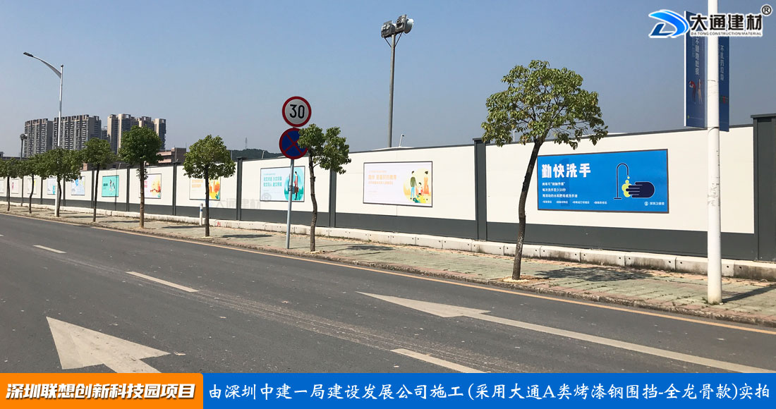 大通建材A類烤漆鋼圍擋-全龍骨款 具有“美觀環(huán)保、抗風(fēng)能力強(qiáng),安全穩(wěn)固、無(wú)損耗、無(wú)建筑垃圾,拆裝快捷、可多次重復(fù)使用,可疊放、便于運(yùn)輸和儲(chǔ)存,外觀具有美化城市環(huán)境”等優(yōu)點(diǎn),適合房地產(chǎn)修建、市政工程、交通道路等工程建設(shè)項(xiàng)目現(xiàn)場(chǎng)使用。